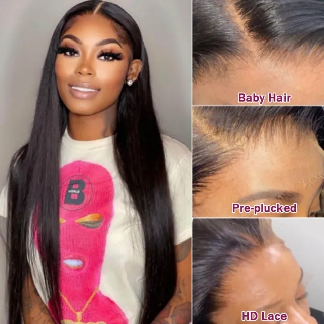 W&H 13X4 HD lace natural black 100% straight human hair wigs
