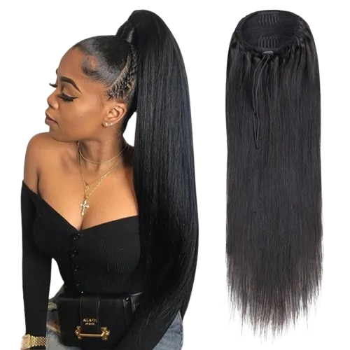 W&H Human Hair Straight Style Ponytail Natural Black (with drawstring)