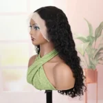 W&H water wave 13×4 transparent lace frontal human hair wig with detachable elastic band